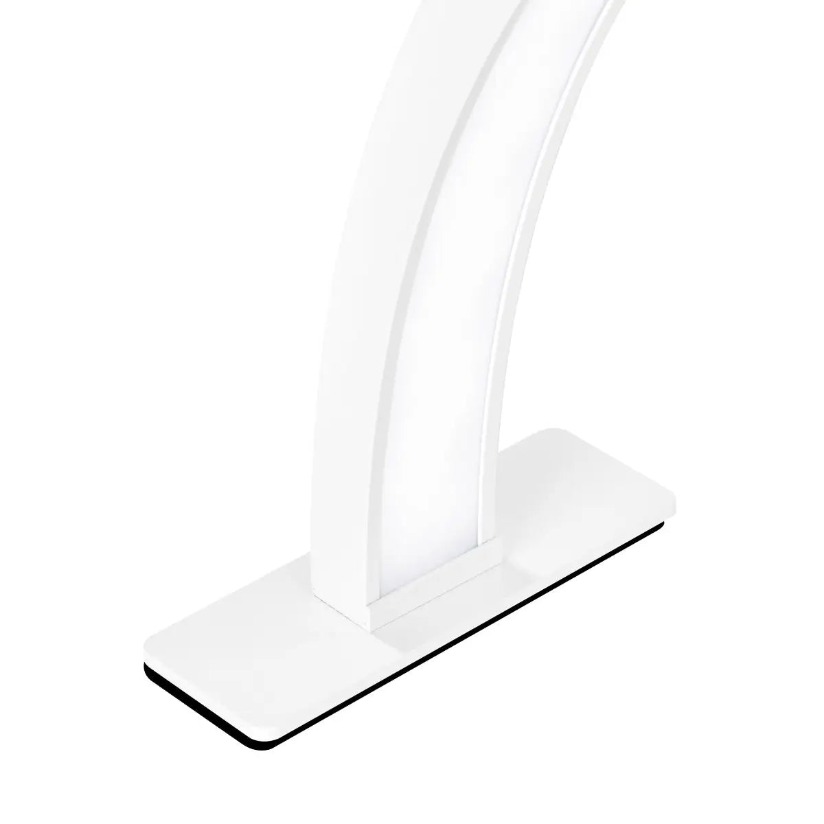 Mit ihrer einzigartigen Form und dem minimalistischen Design in einem klassischen Weißton macht die Glow Arche III Leuchte in jedem Interieur Eindruck. Sein unverwechselbares Aussehen und seine gewölbte Form verleihen ihm einen unkonventionellen Charakter, und die Möglichkeit, die Farbtemperatur anzupassen, macht die Arbeit effizienter. Die mit einer rutschfesten Oberfläche überzogenen Bodenelemente ermöglichen eine komfortable und stabile Einstellung der Beleuchtung am Arbeitsplatz. Die verwendeten Kunststoffe und Metallelemente machen das Gerät langlebig und leicht sauber zu halten.
